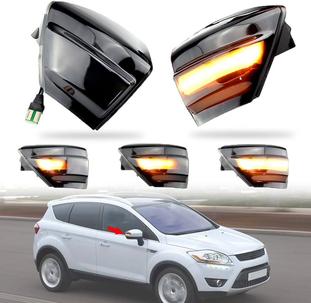 Sinjale Dinamike Pasqyre per Ford S-Max (2007-2014), C-MAX (2011-2019) dhe Kuga (2008-2012). Permiresoni shikueshmerine nga shoferet e tjere me ndricimin LED me te forte se OEM dhe efektin dinamik te sinjaleve duke rritur sigurine por edhe stilin e automjetit tuaj. Ky produkt qe i jep pamje moderne dhe sportive makines suaj, eshte dizajnuar per te zvendesuar sinjalet standarde ne menyre te thjeshte, pa kodim apo modifikime komplekse, dhe per jetegjatesi 5x me te larte se sinjalet OEM. Instalimi rekomandohet te kryhet me kujdes sipas diagramit te instalimit ne foton 4