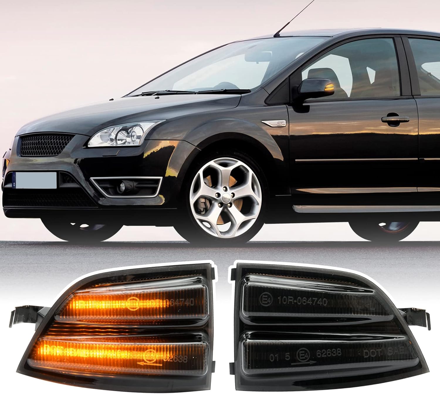 Sinjale Dinamike Pasqyre per Ford Focus MK2 (2004-2008) dhe C-Max (2003-2010). Permiresoni shikueshmerine nga shoferet e tjere me ndricimin LED me te forte se OEM dhe efektin dinamik te sinjaleve duke rritur sigurine por edhe stilin e automjetit tuaj. Ky produkt qe i jep pamje moderne dhe sportive makines suaj, eshte dizajnuar per te zvendesuar sinjalet standarde ne menyre te thjeshte, pa kodim apo modifikime komplekse, dhe per jetegjatesi 5x me te larte se sinjalet OEM. Instalimi rekomandohet te kryhet me kujdes sipas diagramit te instalimit ne foton 4