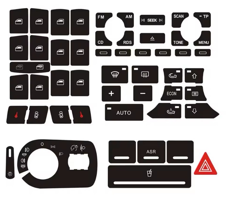 Stiker per butonin e dritave te Audi A3 8P, i dizajnuar per te zevendesuar shenjat e fshira ose te zbehura. Ngjitesi eshte prere me saktesi per modelin A3 8P dhe perputhet perfekt me ikonat origjinale, duke rikthyer pamjen e paster dhe lexueshmerine e panelit. Materiali eshte i qendrueshem, rezistent ndaj nxehtesise dhe konsumit te perditshem, ndersa shtresa ngjitese siguron vendosje te forte dhe afatgjate pa u hequr. Instalimi eshte i thjeshte: mjafton pastrimi i siperfaqes dhe aplikimi i etiketes sipas simbolit perkates. Nje zgjidhje ekonomike dhe efektive per ti dhene panelit te dritave nje pamje me te mire pa nderruar komplet celesin.
