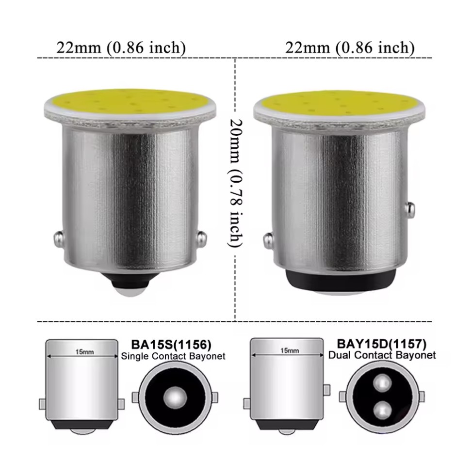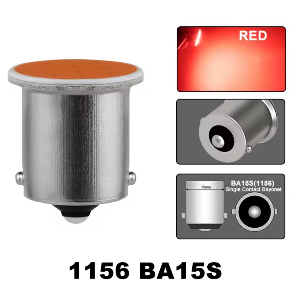 Llamba LED P21W BA15S 1156 me profil te ulet 22×20 mm, te pajisura me 12 chip-e COB per ndricim te forte dhe efikas. Funksionon me 12V dhe ofron 240 lumen ndricim me ngjyre te kuqe. Trupi kompakt lejon instalim edhe ne hapesira te ngushta, ndersa teknologjia COB siguron drite uniforme dhe qendrueshmeri me te larte se llambat tradicionale halogjen. E pershtatshme per perdorim si drita stopash. Instalimi eshte i shpejte dhe pa modifikime, duke ofruar nje permiresim te menjehershem te dukshmerise dhe sigurise se automjetit.