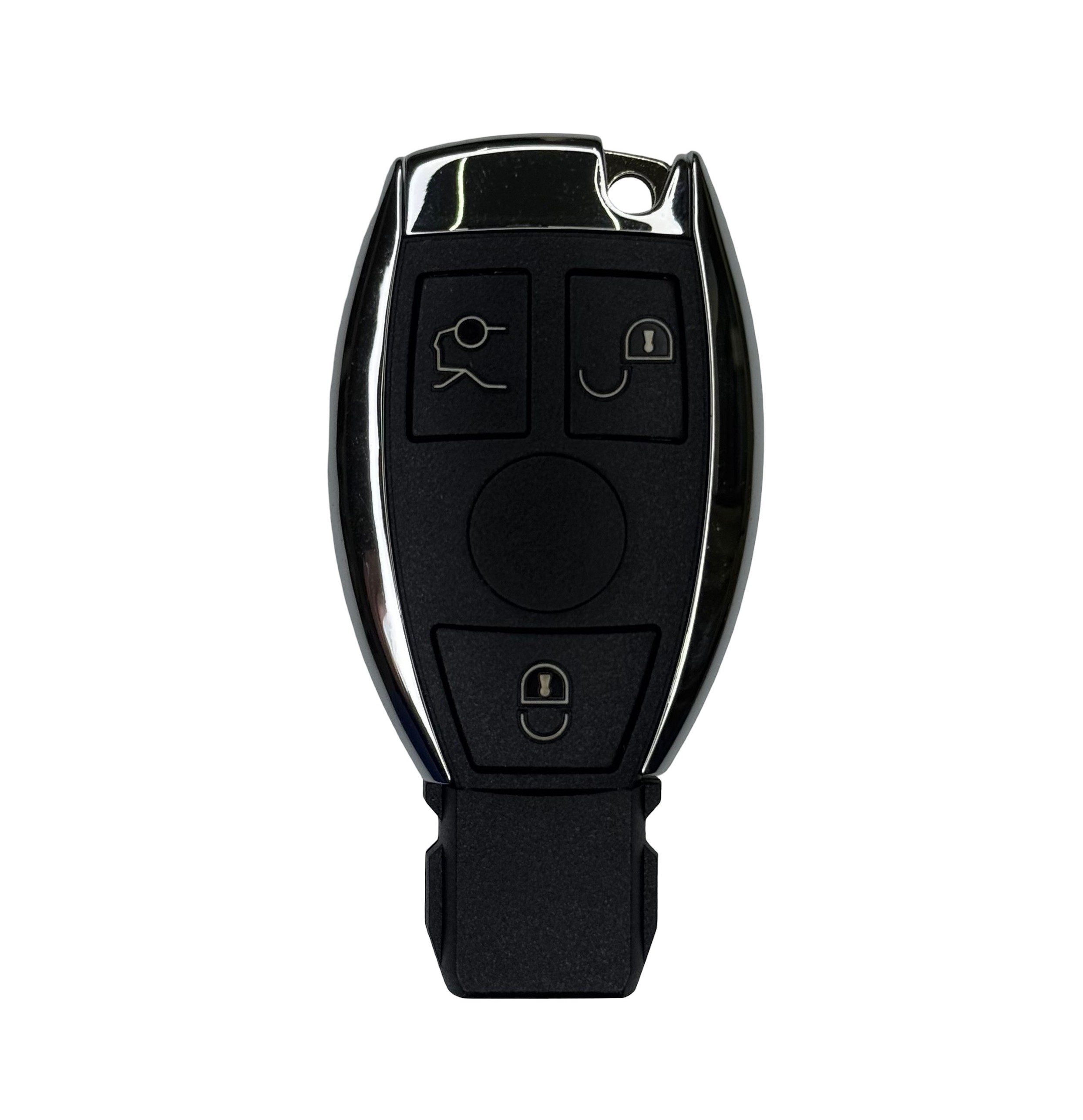 Kapak celesi alumini per makina Mercedes-Benz A-Class, B-Class, C-Class, E-Class, SL, GL dhe shume te tjera, e projektuar per zevendesimin e kapakut te demtuar ose te konsumuar te celesit ekzistues. Ka 3 butona (hapje / mbyllje / hapje bagazhi) dhe vjen komplet me tehun e celesit i cili mund te pritet sipas formes se nevojshme. Nuk perfshin pllaken elektronike, chip-in apo komponente te tjere te brendshem, pasi eshte menduar vetem per riparim estetik dhe funksional te celesit origjinal, jo per krijimin apo duplikimin e nje celesi te ri. Ideale per raste kur kasa eshte e gervishtur, e thyer ose e konsumuar nga perdorimi i perditshem